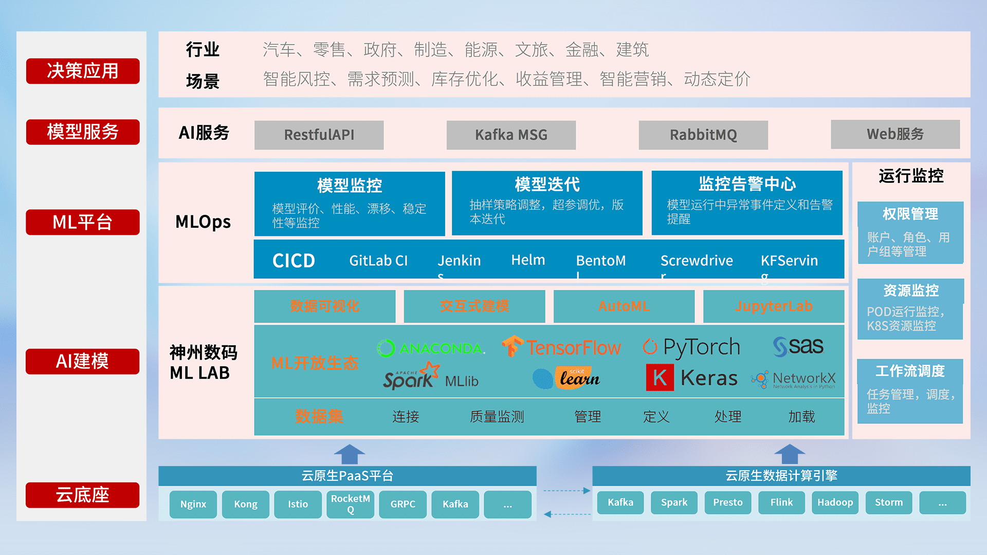 数据+模型双引擎驱动,,面向智能服务场景,,快速灵活利用AI技术,,支持业务决策,,助力企业智能化转型破局。。。。